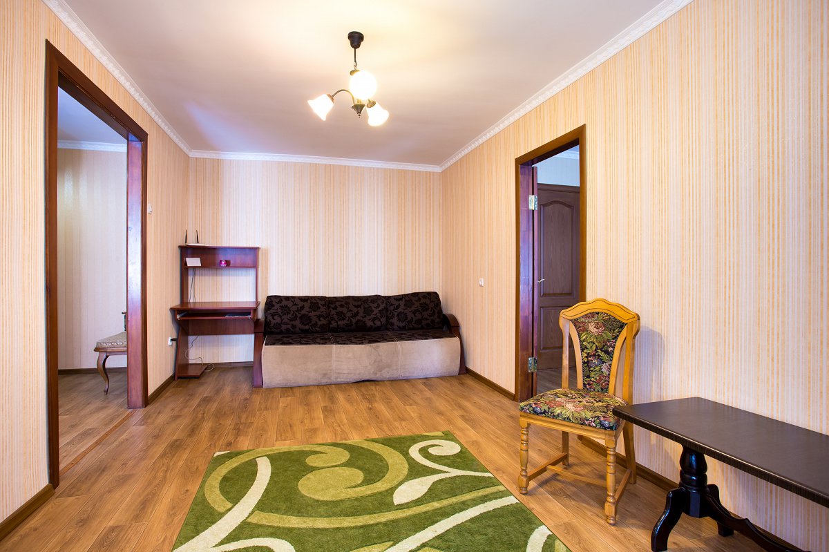 Двухкомнатная уютная квартира находится на пересечении пр.Центральный и ул. Соборной, на 2 этаже 5-этажного дома. Местоположение квартиры предоставляет Вам возможность насладиться проживанием в самом центре Николаева. Квартира состоит из прихожей, гостиной комнаты, спальной комнаты, кухни, санузла и балкона (балкон во двор). Санузел совмещён. Количество спальных мест – 4 (2+2). Квартира с новым ремонтом европейского формата. Вся мебель в квартире выдержана в одной теплой цветовой гамме. Рядом круглосуточный маркет "Сотка", транспорт, банки, рестораны, кафе, парк, пиццерии, развлекательные заведения и т.д. Квартира в классическом стиле полностью укомплектована всем необходимым для приятного проживания: бытовой техникой, постельными и кухонными принадлежностями. В квартире есть, компьютер, интернет, Wi-Fi, спутниковое ТВ ( 600 каналов), стиральная машинка, микроволновка, электро чайник, кондиционер, фен, пылесос, утюг и гладильная доска. Тихий двор, где можно поставить авто, а также в двух минутах ходьбы автостоянка. Командировочным - документы. Возможен трансфер.