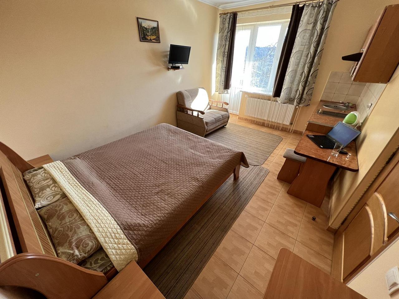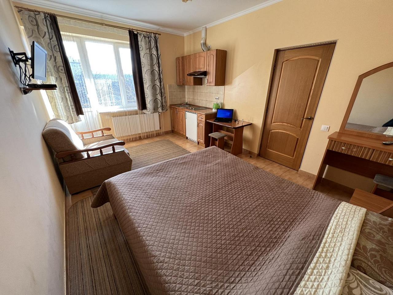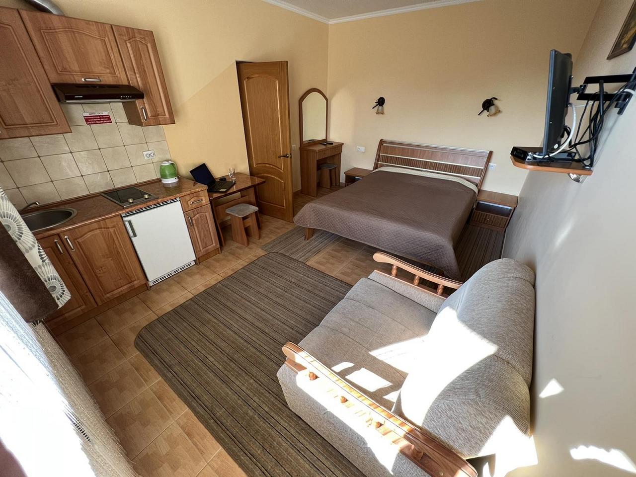 Недоліки: Практически нет! Хотелось бы что бы в трехместном номере было на кухне 3 стульчика, а не два....а то приходиллсь двигать стол к дивану:)))) что не очень удобно....но это все мелочи! В целом все прекрасно!